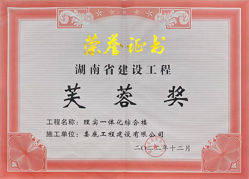 理實一體化芙蓉獎榮譽證書