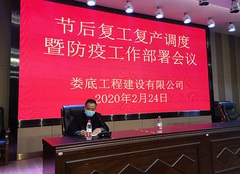 總經理胡勁強調,公司所屬項目要對照復工疫情防控和安全管理細則,按程序申報復工復產手續,要求在3月份全面進行復工。機關相關部門督促指導項目部認真落實復工復產疫情防控工作,確保復工復產和疫情防控工作同部署、同推進、同落實。